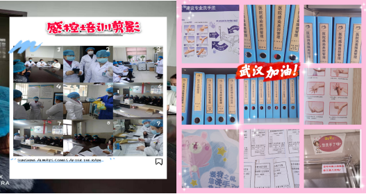 (上图为郭小燕主任对三道防护的理论培训、考试、对保洁后勤人员的操作培训、对高危科室进行的感控培训等。)