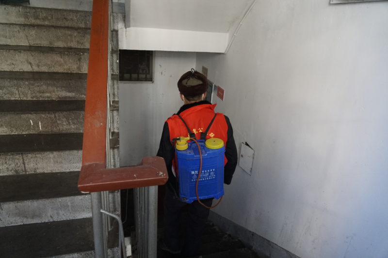 志愿者们向居民、沿街店铺发放宣传手册和口罩并科普疫情防控知识,在辖区显著部位粘贴防范疫情的宣传贴纸,在小区门口为进入小区的人员测量体温,登记车辆信息,让进入小区人员出示电子通行证。还有志愿者配好消毒水背上药水桶走进居民楼,在小区楼道中仔细消杀。