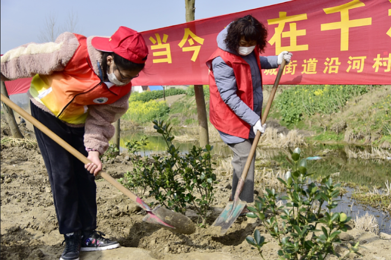 新如皋报讯 每年3月12日是植树节,如皋工业园区农村工作局和如城街道沿河村村委会组织党员志愿者及群众志愿者,在沿河村东八里港参加义务植树、绿色出行主题活动,以实际行动,打造家乡“一河清水,两岸翠色”的生态河道,为家乡添新绿。