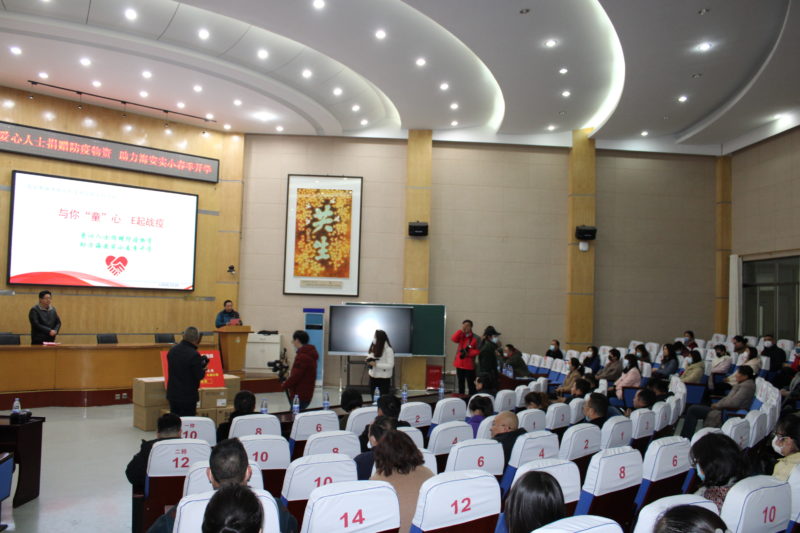 3月29日下午,在海安市实验小学教育集团本部学术报告厅,由海安市委宣传部 、海安市教体局、海安市网络文化协会、海安实验小学教育集团和掌上海安新媒体志愿服务队主办的“与你‘童’心,e起战疫——爱心捐赠防疫物资,助航海安实小春季开学”捐赠仪式在这里温情上演。海安市委宣传部常务副部长刘万春、海安市教育体育局副局长祝和娟、海安实验小学教育集团校长周振宇、海安市红十字会副会长陈松梅、海安市互联网新闻中心副主任景圣红、海安市网络文化协会会长程瑞清、海安市育才社区主任李海峰出席活动。市网络文化协会志愿服务队和实小教育集团部分师生家长代表参加活动。