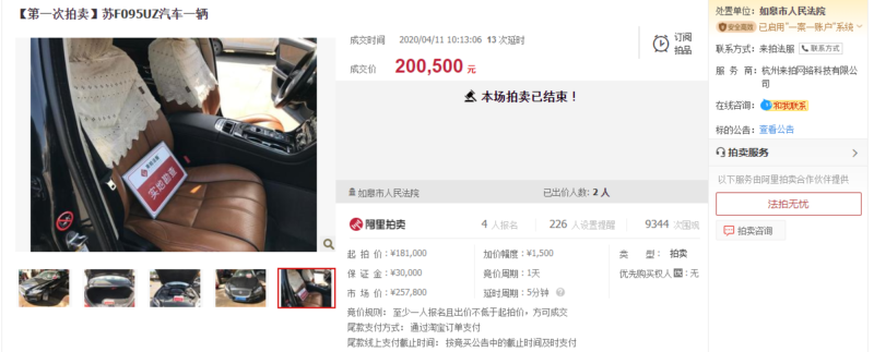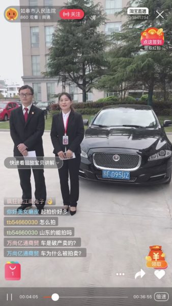新如皋报讯 4月10日,如皋法院法官助理李玉与来拍法服司法网拍人员姜璐珞一起“直播卖车”,直播半小时,网友点赞4000多,围观9334次,4人报名参拍,经过14次出价,13次延时,最终以200500元的价格成交。