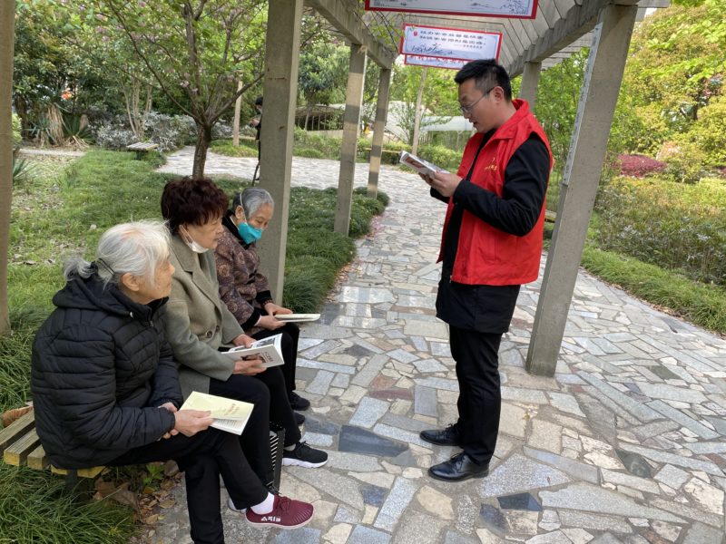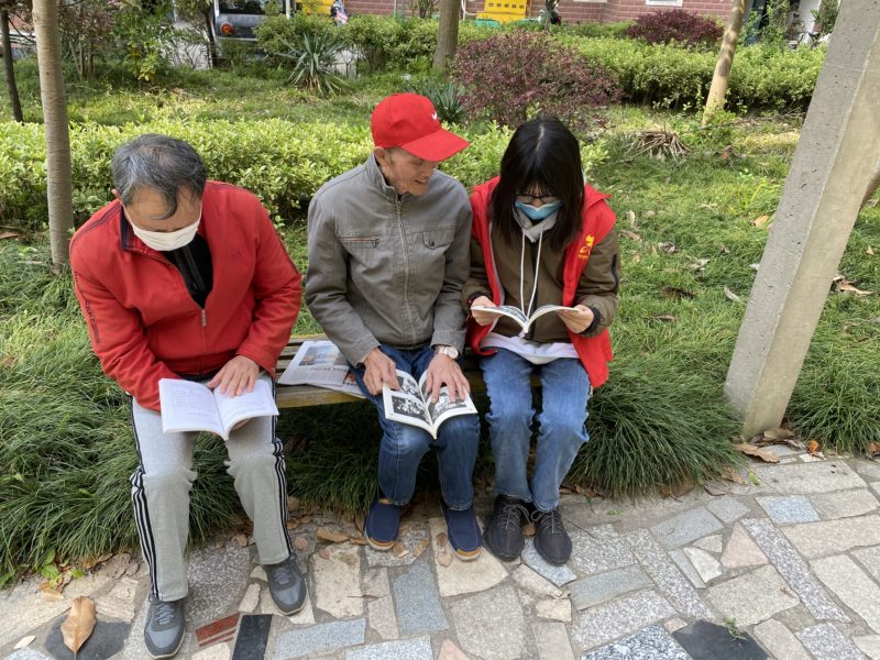 活动中大家各自坐在“静心廊”的长椅上,由社区人员给大家讲述《赵一曼》的故事拉开序幕,大家都被故事中的情节深深打动。随后每位居民推荐自己阅读的书籍,朗读经典的片段或章节,与大家一起学习新知识,分享阅读的开心和快乐。一名老党员同志在阅读《习近平总书记系列重要讲话读本》后感悟颇深,他说在这次疫情期间深刻的感受到祖国的强大带给百姓们满满的安全感,同时也为自己是一名共产党员而自豪。