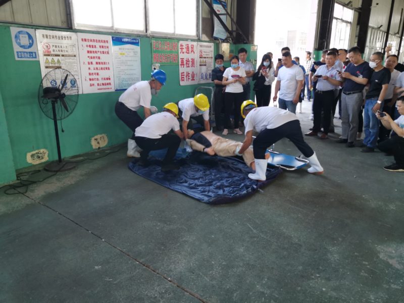 有限空间作业具有情况复杂、危险性大、发生事故后果严重,如果盲目施救易造成伤亡扩大。2:30分,南通春华食品有限公司以有限空间作业“三不进入”为序幕展开有限空间应急救援演练。通过模拟事故场景清池员工氯化氢中毒,演练如何在第一时间发现险情,如何快速响应,通过人员与救援设备的密切配合,让遇险人员迅速脱离险情进行救治。