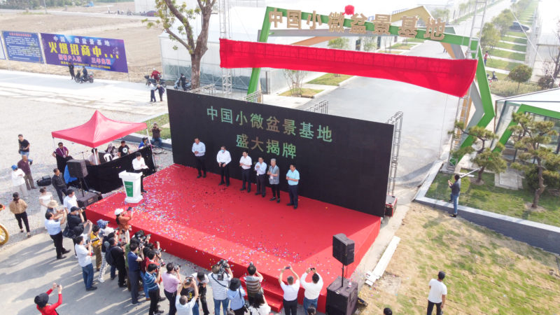 5月28日上午,中国小微盆景基地举行揭牌仪式,出席活动的领导和嘉宾参观了基地现场。中国小微盆景基地位于中国长寿之乡如皋,是国内首家集创作、生产、销售、培训于一体的专业化、市场化小微盆景集聚区。由政府牵头,市花木盆景产业联合会具体实施,项目占地面积约2000亩,分三期规划实施。一期为核心区600亩,采用“前店后厂”的模式;二期为配套区400亩;三期为发展区1000亩。秉承开放、共享、创新的发展理念,整合资源,提升品味,开拓市场,打造全国最具专业性、规模化、科技性的小微盆景集聚区。预计全部建成后,年总产值将达50亿元。