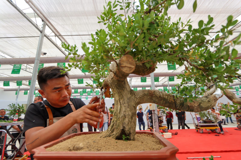 全国盆景交易大会共设有200个左右标准展位,吸引国内200多家花木盆景产业链关联企业前来参展。展销内容包括树桩盆景、观花、观果、观根类盆景,以及花盆、花架、摆件、景石、农药、工具、营养土、园艺机械等各种园艺资材。