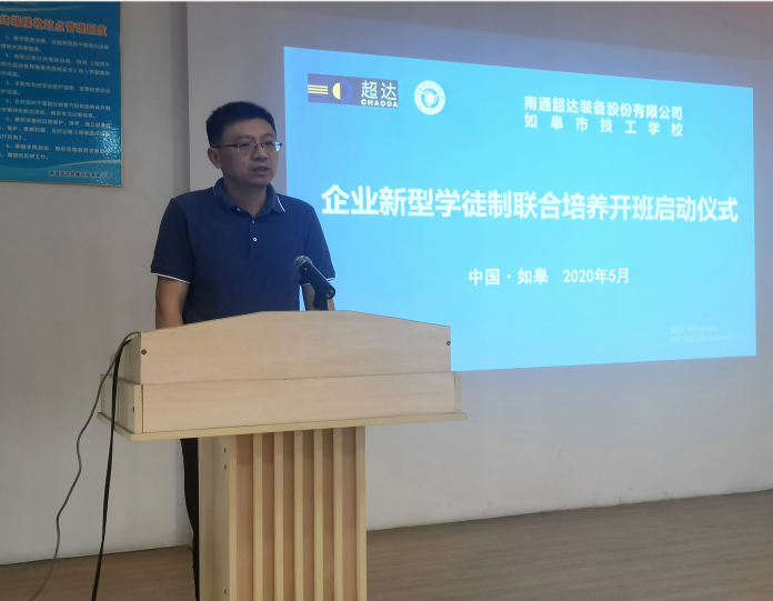 新如皋报讯 为贯彻落实国家、省、市关于全面推行企业新型学徒制的意见精神,5月29日,南通超达装备股份有限公司与如皋市技工学校合作开展的钳工中、高级企业新型学徒制联合培养班在企业职工培训教室正式开班。