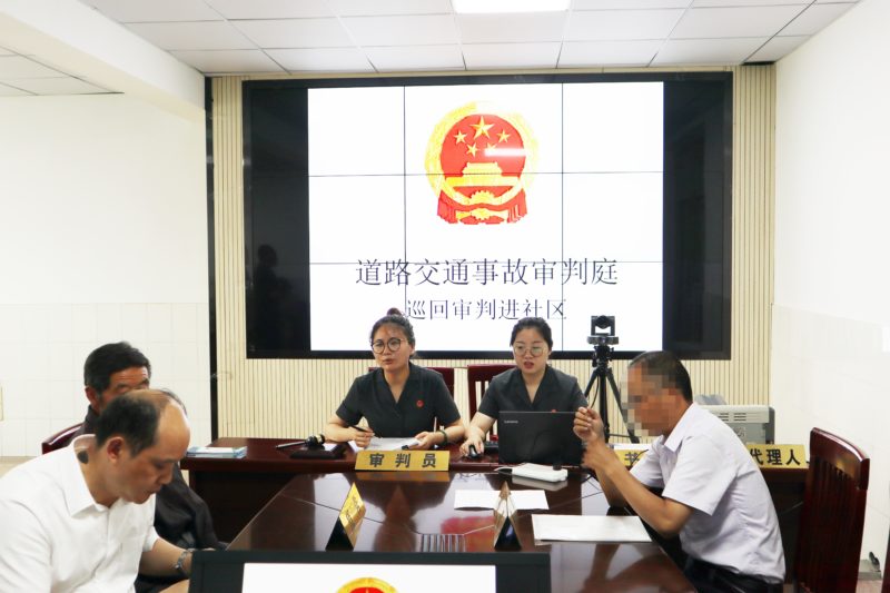 新如皋报讯 2020年6月11日下午,如皋法院道路交通事故审判庭赵容容法官一行来到江安镇便民服务中心,巡回审理一起交通事故致人死亡赔偿案件。