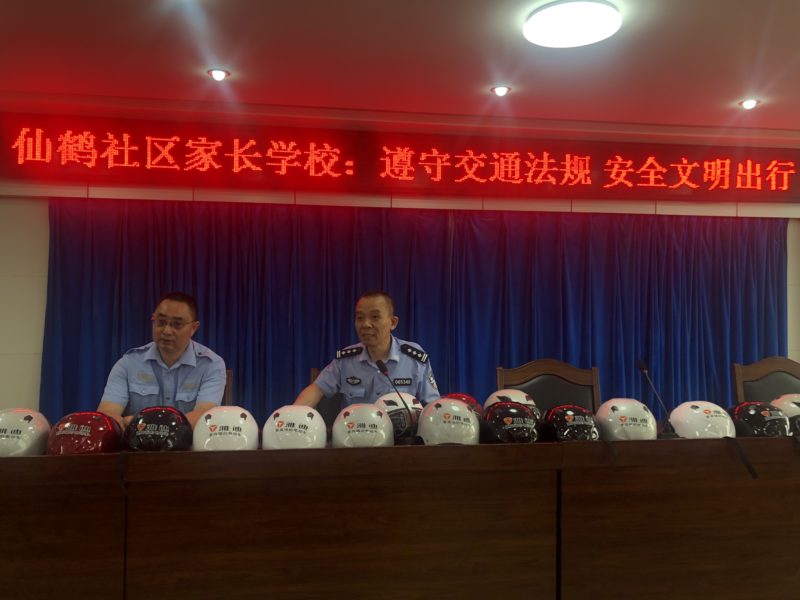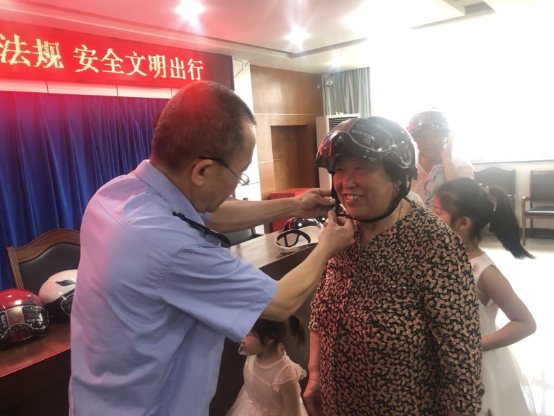 活动中,市交警大队民警现身说法,深入宣传“车让人,人遵规”的安全行车理念,号召各位家长在日常出行中,养成良好的文明交通习惯,防微杜渐,不闯红灯、不超速行驶、不酒后驾车,杜绝一切不文明的交通行为。交警还在现场向家长们赠送了头盔,同时不忘宣传骑电动车戴头盔的重要性,并示范规范佩戴头盔的正确方法。