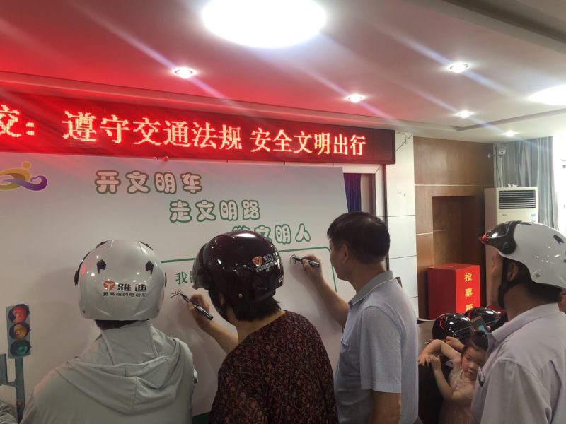 与会的家长们郑重地在“开文明车、走文明路、做文明人”的宣传板上签上了自己的姓名,纷纷表示要率先垂范,为孩子做好榜样,从自身做起,带动周围亲属朋友,广泛宣传,用实际行动,坚持文明出行,倡导文明交通环境。