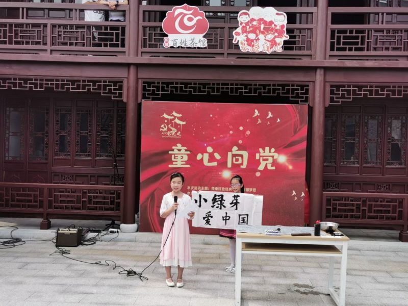 本次活动特邀辖区老兵共同参加。为致敬老兵们无谓艰辛、勇于奋斗的革命精神,继承不畏强敌、前仆后继的红色基因,绿芽亲子悦读社的小朋友们精心准备了精彩绝伦的表演,有舞蹈《红星闪闪》、诗朗诵《我爱你,祖国妈妈》、吉他弹唱《南泥湾》、书法展示《中国人中国字》等节目,通过孩子们认真的演出,我们不难发现,那对挺拔伟岸的军人的敬仰早已植根于在场每一个小朋友心中。