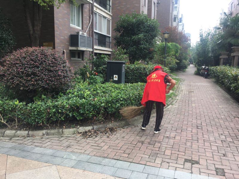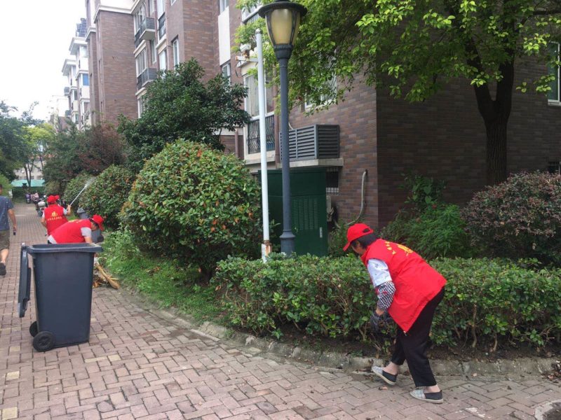 活动中,大家穿好志愿者马甲,带好扫把、火钳、铁锹等工具,对小区绿化带、小花园等进行了清理,还对辖区范围内的广场、道路、垃圾房等区域开展环境卫生整治。