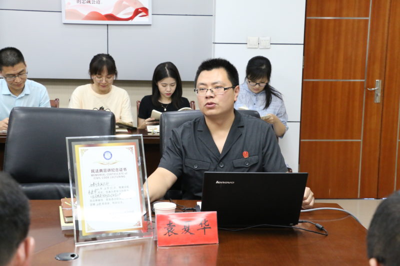 宣讲环节,袁夏华围绕《民法典》的体例、指导思想、编撰历程及重大意义做了深刻阐述,并就与日常生活息息相关的物权、合同、婚姻家庭、侵权责任等亮点内容展开深入交流。通过将具体法条与真实案例相结合,对新增条文的法律解释及法律适用进行解读,既展示了《民法典》给工作生活带来的诸多积极变化,又让与会者真正感受到《民法典》对保护公民切身利益的重要意义。