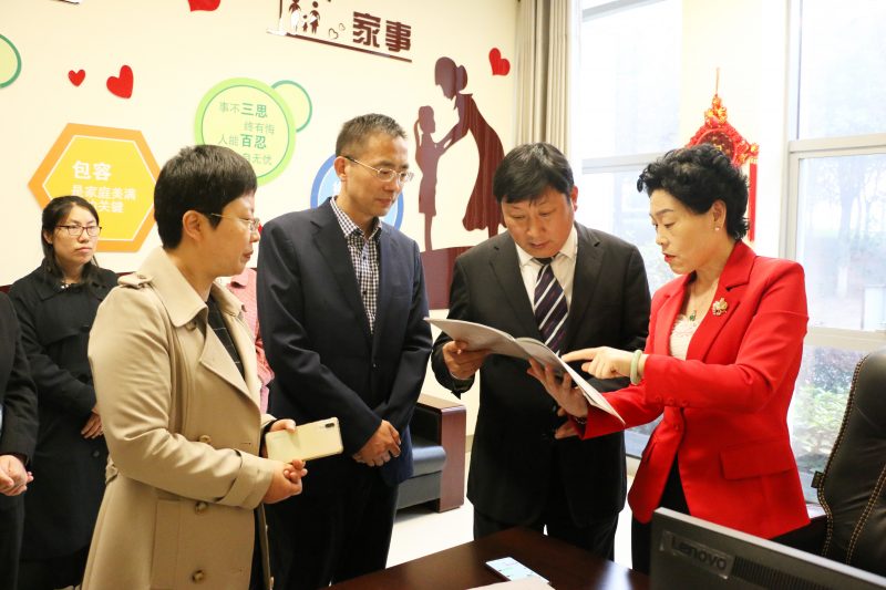 吴道健主任一行参观了开发区法庭的布局设置,听取“法暖黄昏”、“法伴成长”、“法润芳华”三个司法服务驿站的工作情况介绍,了解家事案件受理情况。