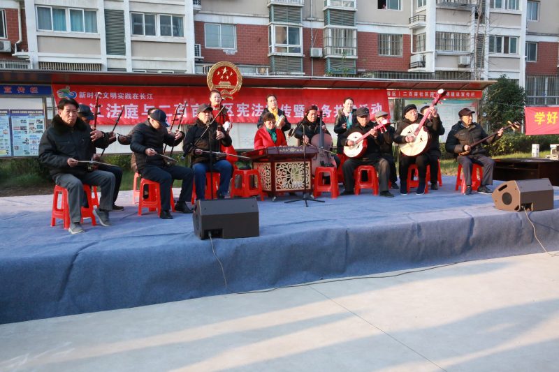 两支部还共同为现场村民献上了精心准备的文艺节目。长江法庭的4名青年党员通过朗诵原创诗《守望绿色家园》,展示了如皋法院环境资源审判的发展历程和主要工作,向村民们宣传了“长江大保护”理念。