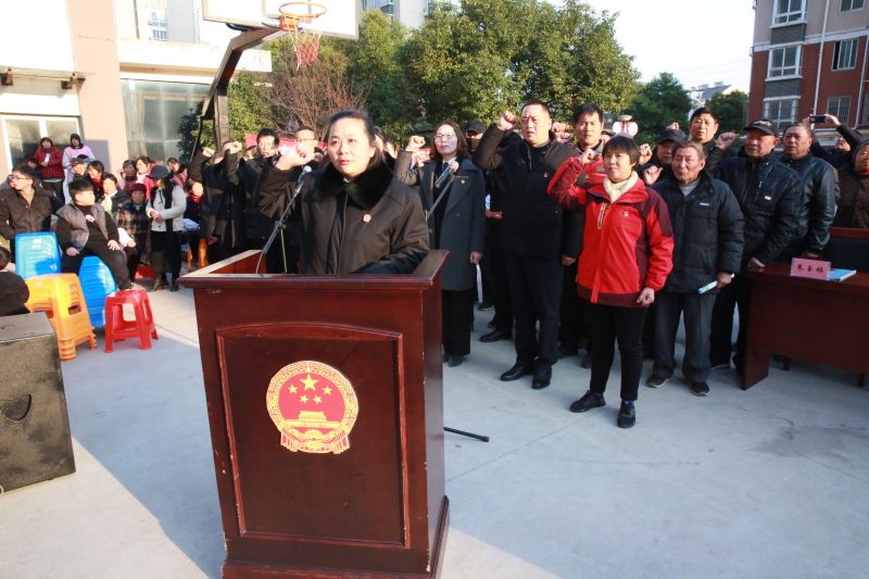 下午2时许,在二百亩社区近500名村民的翘首期盼中,法槌在社区法治文化广场敲响,法官薛专担任审判长开庭审理一起非法捕捞水产品案并当庭宣判。