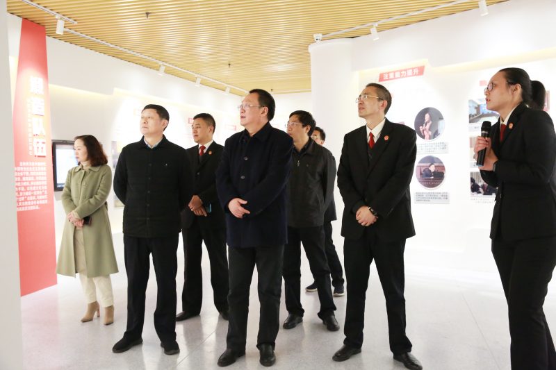 调研组一行实地考察如皋法院诉讼服务中心建设,走进非诉讼服务区、自助立案区、中间库等功能区,详细了解非诉讼服务区的工作机制、诉讼服务区的硬件基础设施等情况。参观了集“院史馆、图书馆、党建家园”为一体的“皋法家园”,通过图文、视频等了解如皋法院的发展概况。