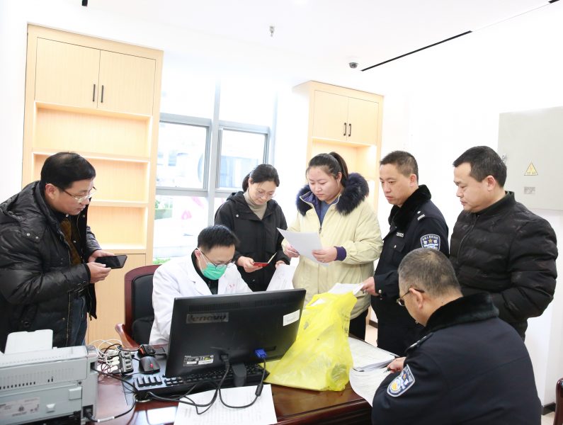 干警们自发登记,测量血压,抽血化验,有序进行。