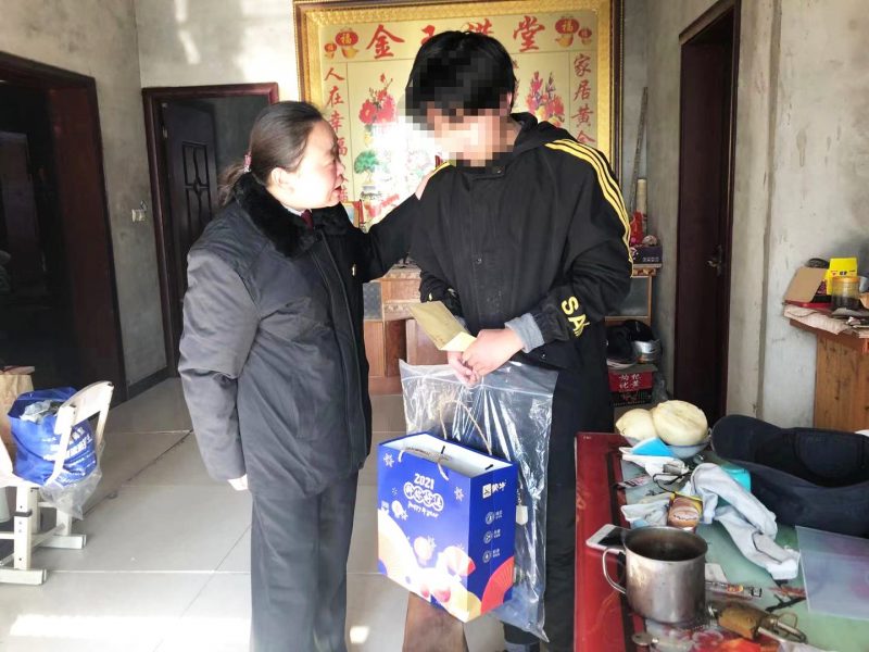 唐明渠代院长亲切地将新年礼物送给2020年刚刚加入春蕾班的小朋友,鼓励他好好学习,快乐成长。