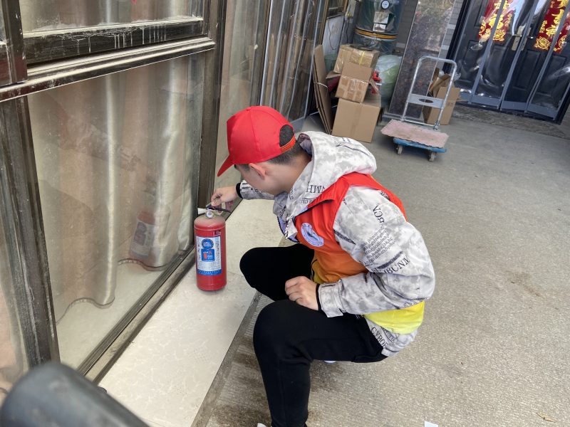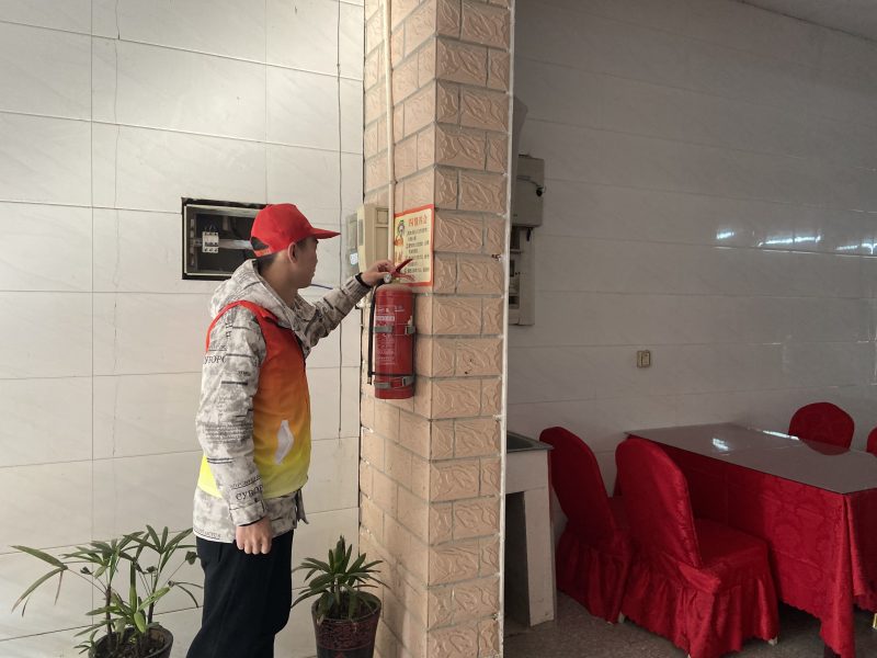 排查中,安全隐患排查志愿小组向村民宣传安全小常识,检查商铺、店铺、企业电线是否有老化、乱拉乱接,货物的堆放是否符合消防安全规定,灭火器消防器材在突发情况是否能正常使用等情况,问题现场交办整改。