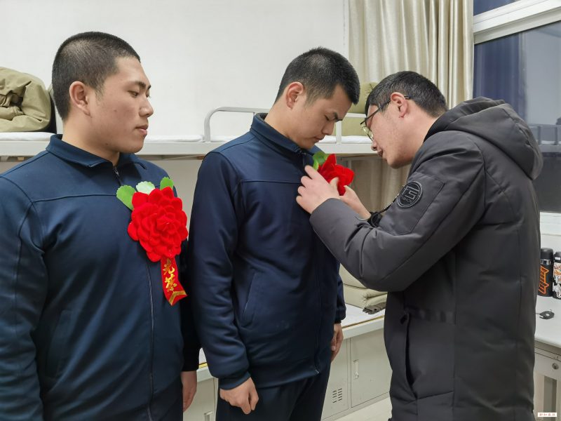 在训练基地,社区民兵营长给新兵们佩戴入伍红花、送上祝贺和慰问金,并表示会全力落实好相关优抚政策,关心照顾好参军家属,让他们安心服役。