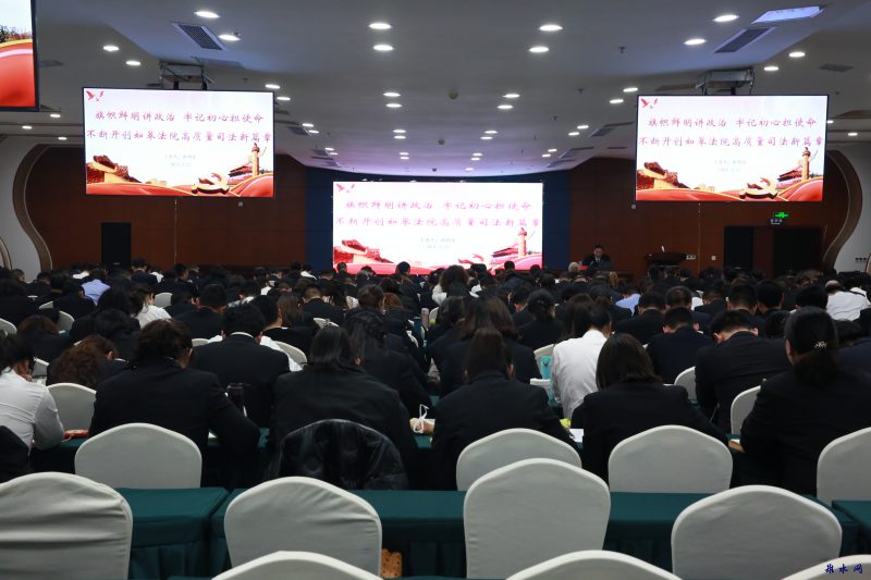 党组书记、院长唐明渠以《旗帜鲜明讲政治,牢记初心担使命,不断开创如皋法院高质量司法新篇章》为题上专题党课,要求全院干警以政治建设为统领,将“旗帜鲜明讲政治”贯穿到法院工作全过程,确保法院工作正确方向。