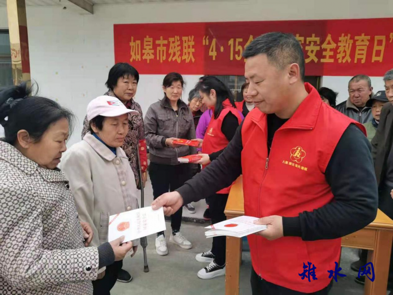 活动现场,如皋市残联在搬经镇焦港村“护爱残疾人之家”,设置了咨询台、摆放宣传资料,围绕政治安全在身边、公共卫生安全在身边等专题进行集中宣传,现场为残疾人宣传《中华人民共和国国家安全法》《中华人民共和国网络安全法》等相关法律知识,将国家安全知识送到残疾人身边。工作人员还将《中华人民共和国国家安全法》《中华人民共和国网络安全法》的读本发放到残疾人手中,让残疾人进一步了解公民在维护国家安全中有哪些权利、应尽哪些义务,正确引导残疾人树立国家安全意识,自觉关心、维护国家安全。
