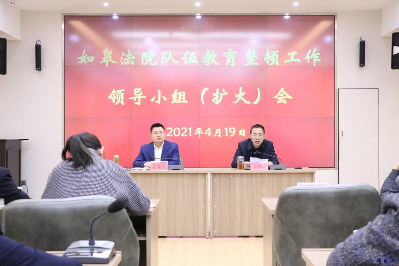 新如皋报讯 4月19日,如皋法院召开队伍教育整顿领导小组(扩大)会议。全体班子成员、部门负责人及专班人员参会。党组成员、政治部主任、院教育整顿办公室主任袁夏华主持会议。