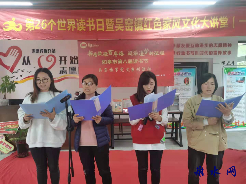 新如皋报讯 “没有共产党就没有新中国,没有共产党就没有新中国,共产党辛劳为民族,共产党他一心救中国……”4月22日下午,如皋市吴窑镇新时代文明实践所内一片欢腾,各村(居)文化管理员、党员代表一道,用唱红歌的方式拉开了“第26个世界读书日暨吴窑镇‘红色家风文化大讲堂’”活动序幕。