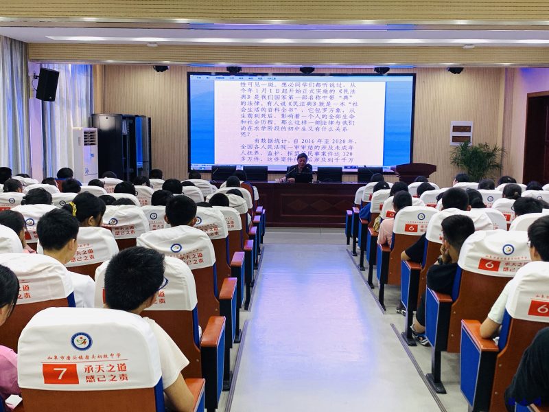 5月10日,磨头法庭庭长张健到磨头初级中学开设“《民法典》与未成年人保护”普法专题讲座。