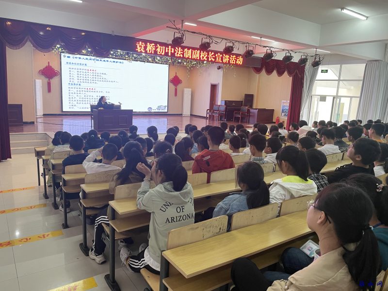 5月11日,民二庭副庭长崔小兰为袁桥初级中学初二年级学生上了一堂生动有趣的法治课,引导青少年从理性客观角度看待身边事、身边人,结合近年来媒体披露的青少年犯罪典型案例,教育引导学生做知法、懂法、守法的好少年。