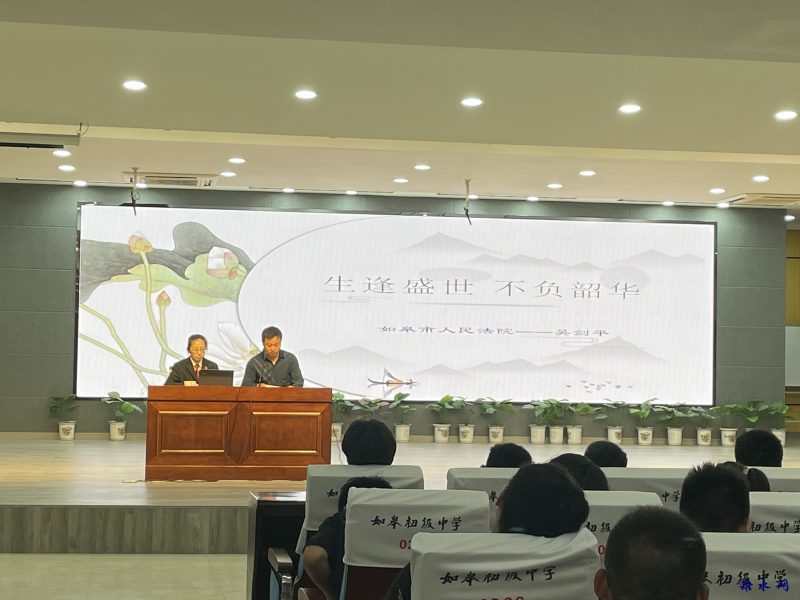 5月10日下午,如皋法院审判委员会专职委员吴剑平走进如皋初级中学,开设《生逢盛世,不负韶华》专题普法课。