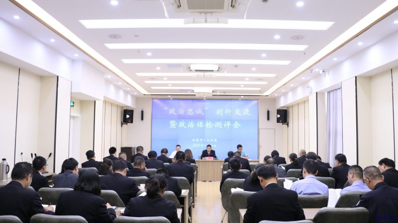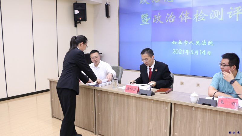 新如皋报讯 按照政法队伍教育整顿统一部署,5月14日上午,如皋法院召开“政治忠诚”剖析交流暨政治体检测评会。省指导组泰州中院执行局五级法官王锐同志、南通中院四级调研员陈向东同志到会指导。全体院领导、中层干部参加会议。