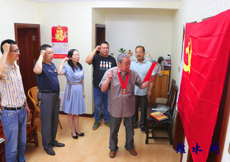 6月21日下午,如皋市住建局白蚁防治站党支部组织党员和入党积极分子,以登门看望慰问老党员陶元吉同志,并为他颁发“光荣在党50年”纪念章为主题,开展了“致敬●光荣在党50年”主题党日教育活动。陶元吉同志今年86岁,加入中国共产党61年,因身体健康原因,长期足不出户。当金灿灿的纪念章挂在陶老胸前时,老人家心潮澎湃,激动的说:“在建党100周年之际,获得这枚纪念章,我无尚光荣,我祝福我们的党更强大,祖国更昌盛,人民更幸福。”陶元吉老同志还为全体党员、入党积极分子讲述了他爱党信党跟党走的心路历程。