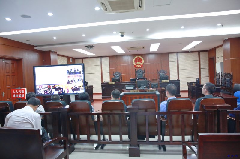 本次庭审在驻如皋看守所支云科技法庭举行,审判人员、公诉人、辩护人与被告人之间隔着玻璃,实现无接触开庭,确保疫情防控与审判工作同步推进。部分人大代表、政协委员应邀在如皋法院庭审室视频连线旁听庭审。