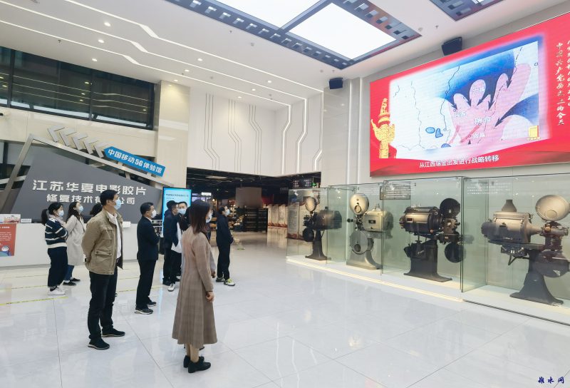 接着,三个支部的党员来到江苏华夏电影胶片博物馆参观学习。在讲解员的带领下,大家参观了世界电影史百年来全系列电影放映设备,了解了胶片电影声音修复与画面修复的相关知识。特别是胶片仓库内保存的近两万部胶片,立体展现了中国近代百年历史中许多弥足珍贵的声像资料以及新中国发展各阶段的艺术电影信息,让鲜活的历史“重现”,把红色记忆、红色精神根植于心。随后,党员干部们观看了《中国共产党历史上的今天》《党的第九次全国代表大会》等纪录片,通过一段段珍贵的影像,重温党的发展历史,在鉴往知来中强化使命担当,自觉做理想信念的实践者。