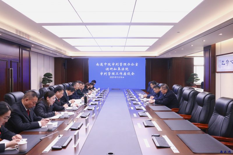 新如皋报讯  11月16日,南通中院审管办主任陈健全一行到如皋法院调研指导审判管理工作。如皋法院党组书记、院长唐明渠,党组成员、副院长李斯武,相关部门负责人及审管办全体人员参加座谈会。