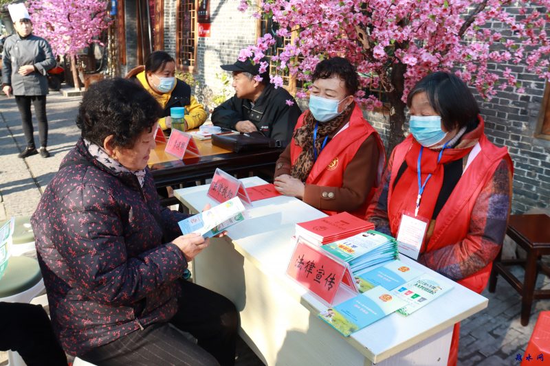 活动现场设置了法律咨询、法律调解、法律援助、法律宣传服务台,前来咨询的市民络绎不绝。老法官们结合法条和典型案例细致耐心地为群众讲解和答疑,并向前来咨询的群众发放普法宣传手册。