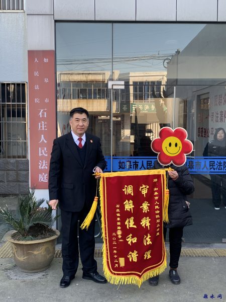 新如皋报讯 近日,如皋法院石庄法庭收到了一面“调解促和谐,审案释法理”的锦旗,原告顾某等人感谢法官在一起义务帮工人受害责任纠纷案中,耐心调解,以案释法,促使当事人履行46万元赔偿款,真正做到案结事了。