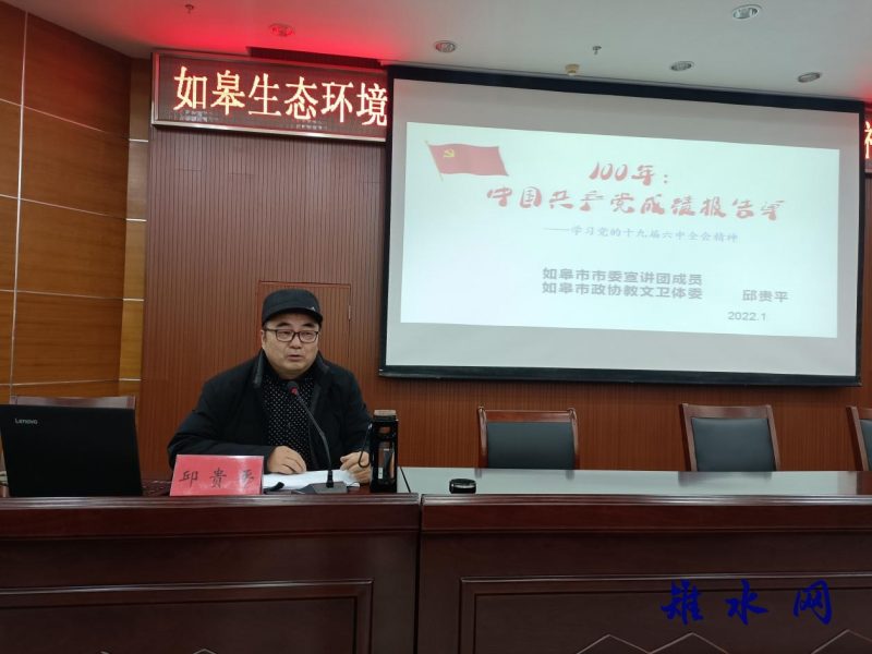 新如皋报讯 为全面准确领会党的十九届六中全会精神,把学习全会精神与贯彻习近平总书记视察江苏重要讲话精神结合起来,切实提高党员冬训质量水平,1月19日上午,如皋生态环境局邀请市委宣讲团成员、市政协办二级主任科员邱贵平给全体干部职工授课。