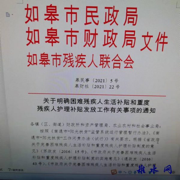 经历了近一个世纪的风风雨雨,年逾九旬的王秀珍老人觉得,她的晚年生活很幸福,不仅有晚辈的孝顺,每月还能领取750元的重残补贴。王秀珍老人的“意外之喜”,源于去年3月份如皋制定出台了《关于明确困难残疾人生活补贴和重度残疾人护理补贴发放工作有关事项的通知》,明确困难残疾人生活补贴、困难重度残疾人护理补贴发放标准,实现对残疾人的生活、护理补贴应补尽补,切实维护残疾人合法权益。