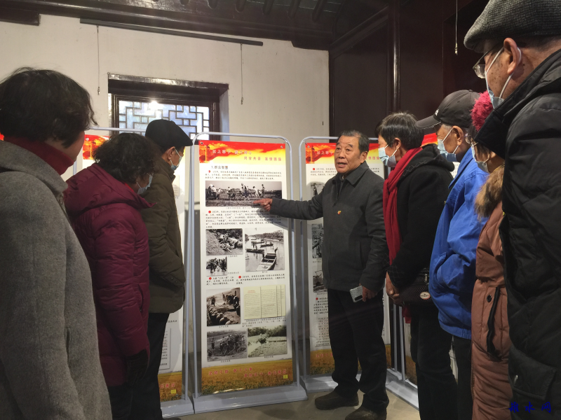 宣讲活动结束后,杨春和书记带领大家一起观看《如皋治沙精神》展板,从导语、昔日旧帽、治沙序曲、战天斗地、最后决战、结束语六个方面,对当年如皋治沙改土的历史、经济社发发展,进行了详细回顾。