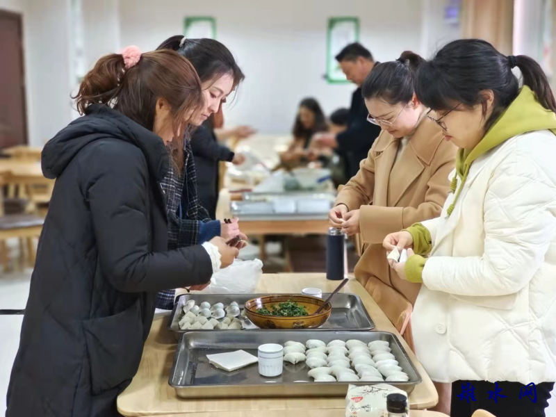 在第二阶段的包饺子活动中,女同胞们个个热情高涨,围坐一起展示包饺子手艺,相互切磋包饺子的技巧,现场欢声笑语,其乐融融。不一会儿功夫,一笼笼如元宝般的饺子就包好了。中午一碗碗热气腾腾的饺子很快就被端上了食堂餐桌,大家吃着自己亲手包的饺子,不亦乐乎。