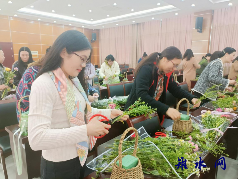 一盆盆细致精美、别出心裁的插花作品逐渐完工,仿佛置身一片花海,芬芳沁人心脾,大家的脸上都洋溢着幸福灿烂的笑容。