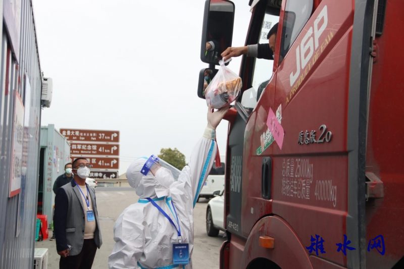“我们的工作,一方面是保证为搬经镇运输重点物资的车辆顺畅通行,确保企业的正常生产运行;另一方面是对车辆进行全面消杀,同时确保货车司机不下车、不逗留、不与外界接触。”现场值守人员、如皋市搬经镇叶庄社区民兵丁正兵正在给一辆货车贴封条,并把一份“爱心大礼包”递给司机。