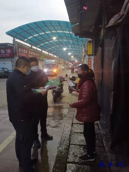 3月份以来,分局每天抽调3名工作人员进入城北市场,以市场入口为重点,覆盖所有店面、摊位,全方位进行疫情防控工作。4月1日起,支部党员突击队加入城北市场疫情防控工作专班, 24小时值守市场,主要担负大门进入管控、周边车辆秩序维护、打击场外交易、交易预申报管理等工作。