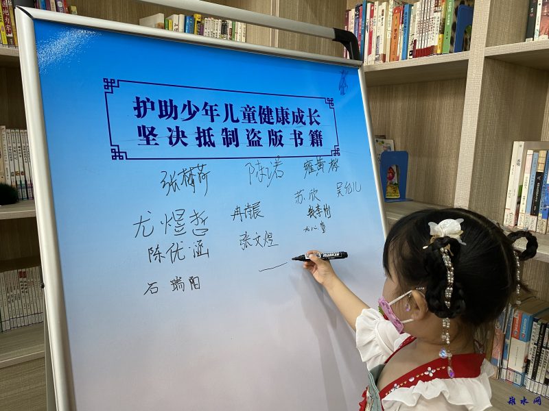 新如皋报讯  “遇到盗版图书怎么办?”“千万不能在小摊上买书!”中心沙社区的志愿者正在为孩子们普及扫黄打非小知识,给现场的家长和儿童传授“假冒”图书的小妙招。在听完志愿者的普及后,孩子们也在“护苗2022绿书签”签名板上签名。