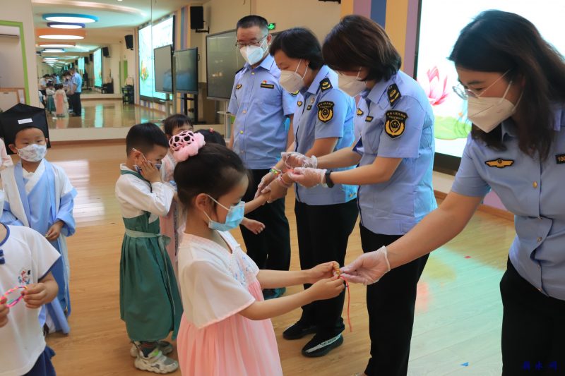 活动开始,幼儿园老师进行诗歌朗诵 、爱国主义演讲;接着小朋友表演传统服饰展示和打鼓舞蹈,并为大家送上五色彩绳编织的手环和端午的祝福;随后分局钱越平为大家介绍端午节的来由,讲述屈原的故事,并表示我们要追念历史先贤、激扬民族精神,继续传承发展民族节俗文化,增强民族自豪感和文化自信心,向世界奉献我们优秀的节日文化遗产;最后,大家与小朋友一起包粽子,感受节日的气氛。