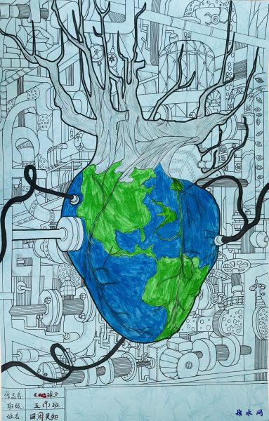 我再仔细调整角度,想看看是什么原因导致这样的视觉效果!然后,我就看到了号称世界强国的各个国家:随着社会发展,一座座高楼大厦拔地而起,肆意砍伐树木,滥垦草地。大量的滥用土地,让地球有了‘耕地短缺’之疟。而那些无时无刻都在帮助人类排解二氧化碳,产生氧气供人类吸收,滞留沙尘,保存空气洁净的植被也在渐渐远去;高科技产业随处可见,随之而来的工业废水,生活废水,产生的污水,逐层侵入地球,汽车尾气和工厂里排出的废气,严重超标,加上化学用品,如农药,杀虫剂等等,使大气层百孔千疮……