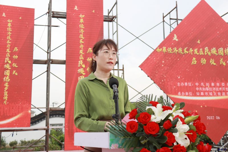 目前如皋正在创建“全国民族团结进步示范市”,如皋经济技术开发区党群工作局局长、城北街道党工委副书记、宣传委员马乐为开发区民族团结进步宣传月启动仪式致辞,她说,开发区一直以“铸牢中华民族共同体意识”为主线,以创建“全国民族团结进步示范市”为抓手,每年7月作为开发区“民族政策宣传月”,坚持用共同理想信念凝心铸魂,大力发展特色产业,加强基础设施建设,着力保障和改善民生,促进少数民族群众在开发区共居、共学、共事、共乐,守望相助、手足情深,不断推动开发区民族工作高质量发展,持续巩固社会和谐、民族和睦的良好局面。