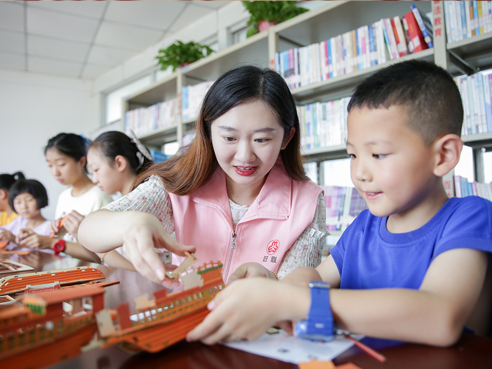 活动伊始,志愿者带领孩子们来到社区农家书屋,一起学习“红船精神”,制作红船模型。孩子们聆听了志愿者讲解的红船故事,对 “红船精神”的深刻内涵有了自己的理解,带着对“红船精神”的最新感悟,志愿者们和孩子们一起动手拼装模型,大家发挥巧思,使用巧劲,忙得不亦乐乎,颇有成就。